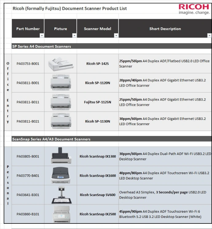 RICOH scanners enable organizations and individuals to improve productivity, save time and money, organize and structure your documents, share information and is often the first element of larger digital transformation projects.